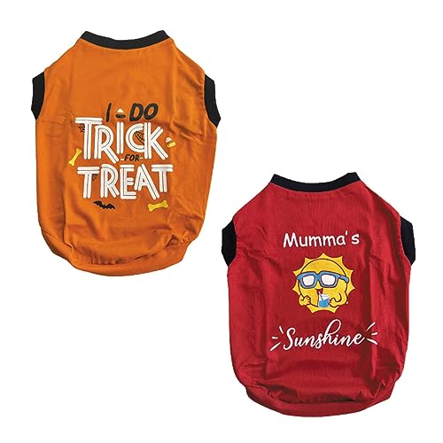 WAGZY Red And Orange Stretchable Summer T-Shirts For Puppies, Kitten, Dogs And Cats (10″ Xxs) – 2 Count