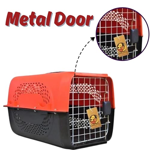 Foodie Puppies Imported Plastic Portable Pet Travel Carrier Cage & Kennel House for Dogs, Puppies & Small Animals (19″ X 12″ X 12″, Neon Red)