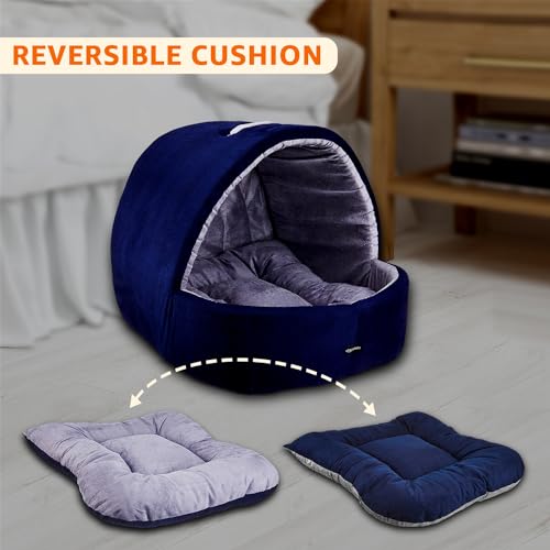 amazon basics Premium Medium Size Dog and Cat Cave Pet Bed | for Cats and Kittens | Length 58 cm Width 58 cm Height 46 cm (M)